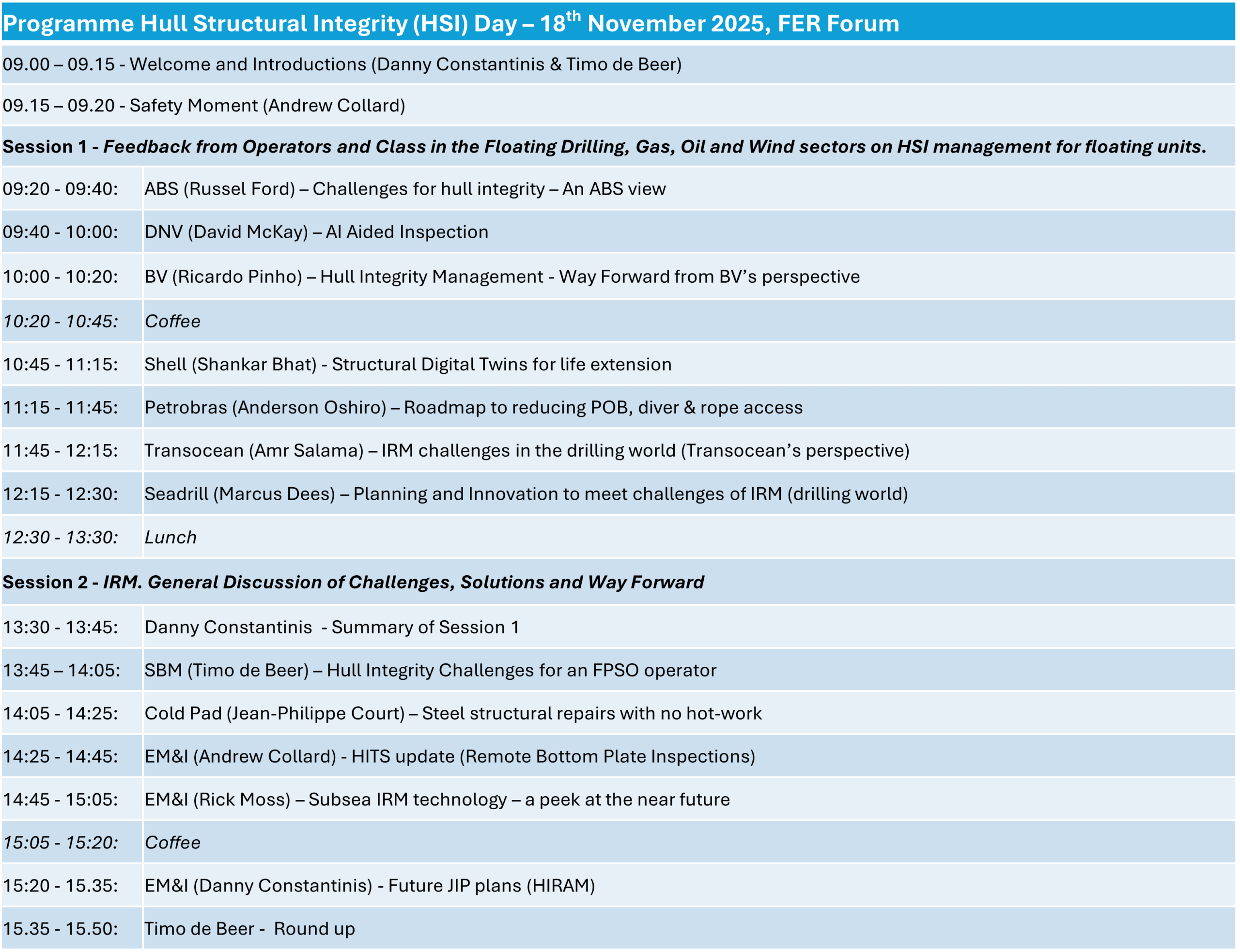 We believe that the HSI Open Forum will build on the success of the HITS JIP by inviting the drilling, floating gas and floating wind sectors, and adding repair & maintenance challenges and solutions.